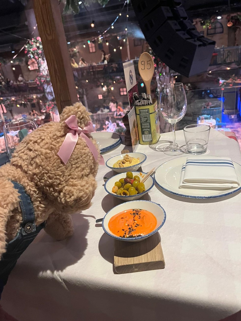 The full experience lasts around four hours and begins the moment you walk through the beautiful blue doors. Every detail has been carefully thought out, from the décor to the quirky posters around the venue, making it feel like youve stepped straight into the Mamma Mia films.